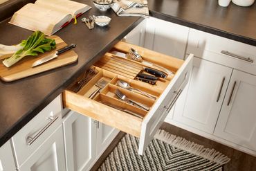 We offer a wide range of kitchen cabinets, all with solid wood construction and soft-close features. With several color options available, we're sure to have the perfect timeless choice for your needs. And cabinets aren't just for the kitchen -- so know that we have solutions for every room in the house, whether it be the garage, basement, laundry room, kids room and more!